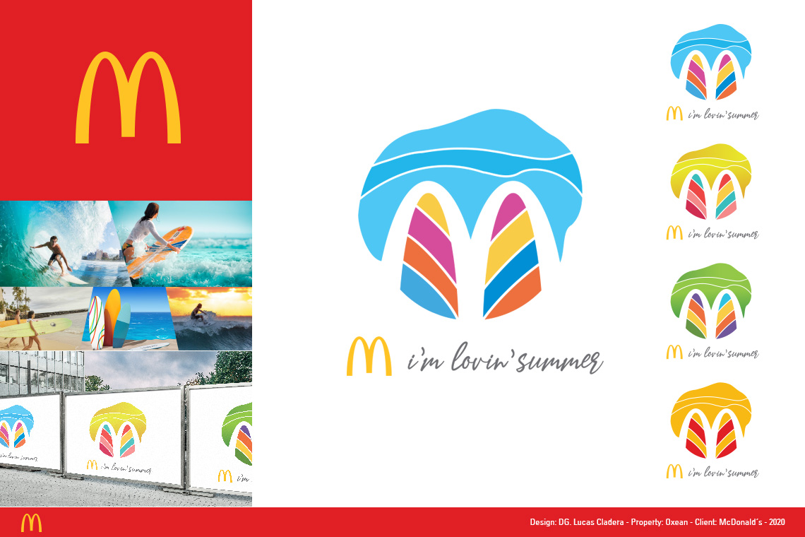 The identity was inspired by keywords such as summer, beach, surf and sun. A modern and fresh logo was raised. If we see in detail the logo has color variants to play in different contexts, something that summer, games and sports allow. Obviously the identity is supported by the main McDonald’s logo, but with a twist that breaks with the traditional world and it is more linked to playful situations.